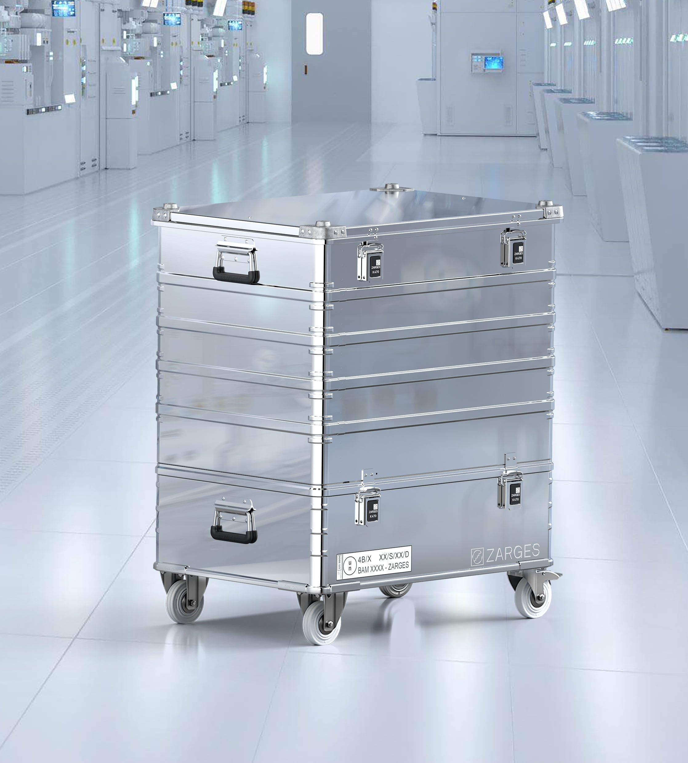 Zarges cleanroom cases are UN Packaging Group I certified for the transport of hazardous materials, meeting the requirements of UN codes 4B, 4BU, 4BV, 4BW, and 50B.