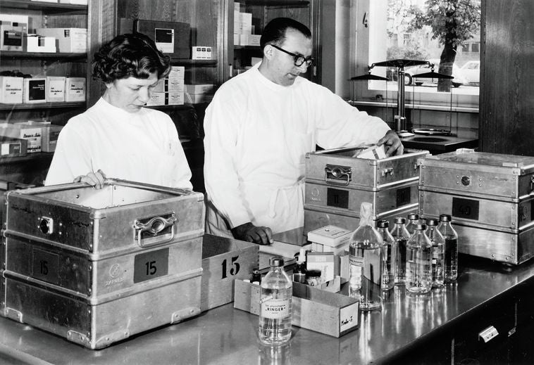 1951 marks the beginning of the mass production of aluminum collapsible cases. There are not too many trucks in the early ’50s. Goods are transported by rail, but the railway has too few carriages for the goods required in the country. The solution: the Zarges collapsible case. Not only does it help solve the problem of space, but it also is lighter than conventional packaging and, when empty, can be folded down to one sixth of its original volume. The dimensions of the Zarges collapsible case are in part still a standard in the industry.